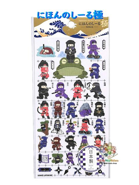 【 Japanese Sticker Seal 】 にほんのしーる 極 きわみ NO.225355 忍者 / NINJYA 国産 和紙シール 金の箔押し シール 日本 和柄 和風 術 くの一 にんじゃ 隠密 歴史 ジャパン ドロン 蛙【3cmメール便OK】