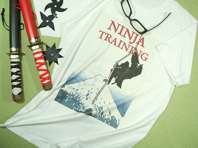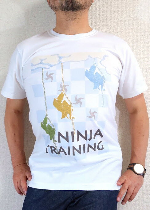 【サイズ】 S:着丈64×身幅45、M:67×49、 L:70×53、XL:74×56、2XL:78×59cm 【素材】 コットン【NINJYA 忍者Tシャツ】 富士を背に、上れ!上れ! 冬富士をバックにトレーニングに励む忍者!“OMOTENASHI”に向けて、準備万端ニッポンの心意気の象徴だぁぁ!…とかね ※商品はTシャツのみです