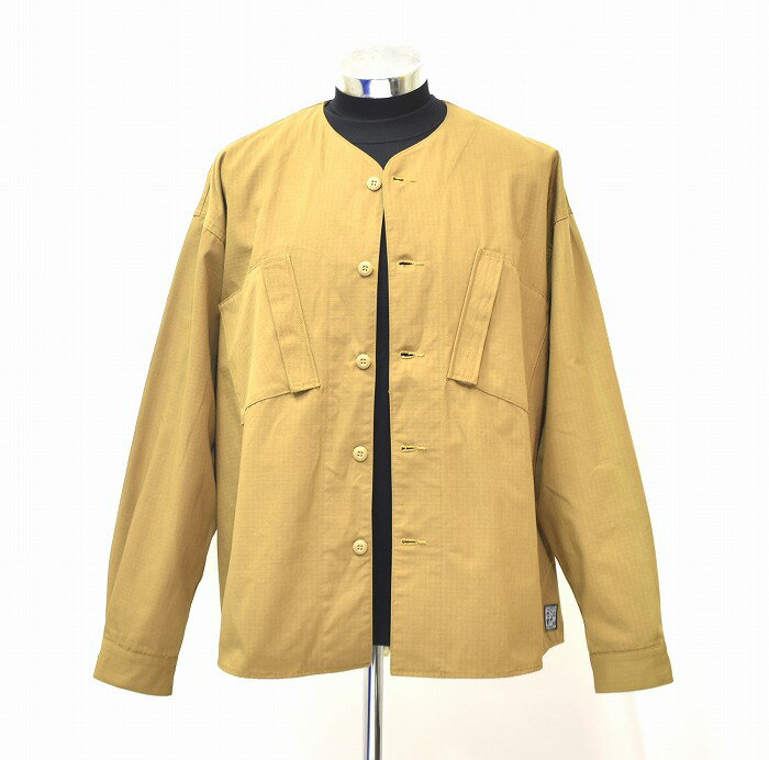 【中古】[訳あり】 F-LAGSTUF-F (フラッグスタッフ) リップストップ ノーカラー ミリタリー ジャケット ブルゾン ショート 長袖 L/S Ripstop Military Nocollar Jacket Blouson フライト ファティーグ FLAGSTUFF フラグスタッフ フラグスタフ WORK ストリート MADE IN JAPAN