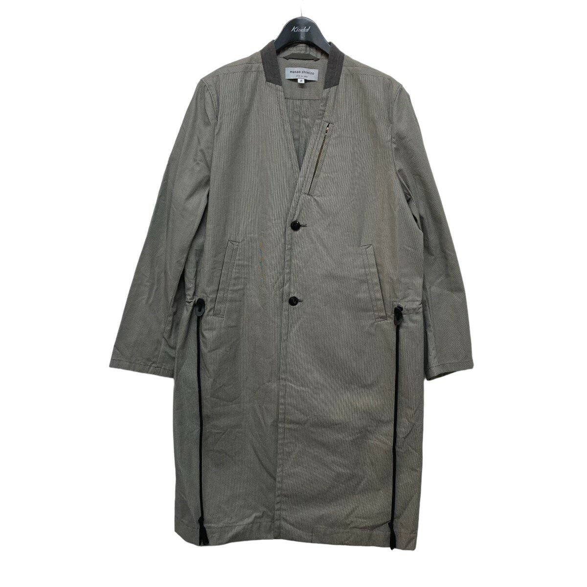 【中古】masao shimizuchecked nocollar coat グレー サイズ:2