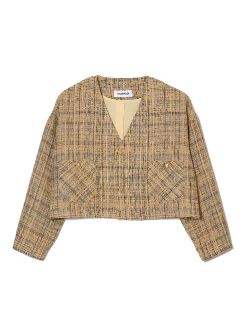【POINT2倍】【DISCOVERED ディスカバード】TWEED NOCOLLAR JACKET|(BEIGE)