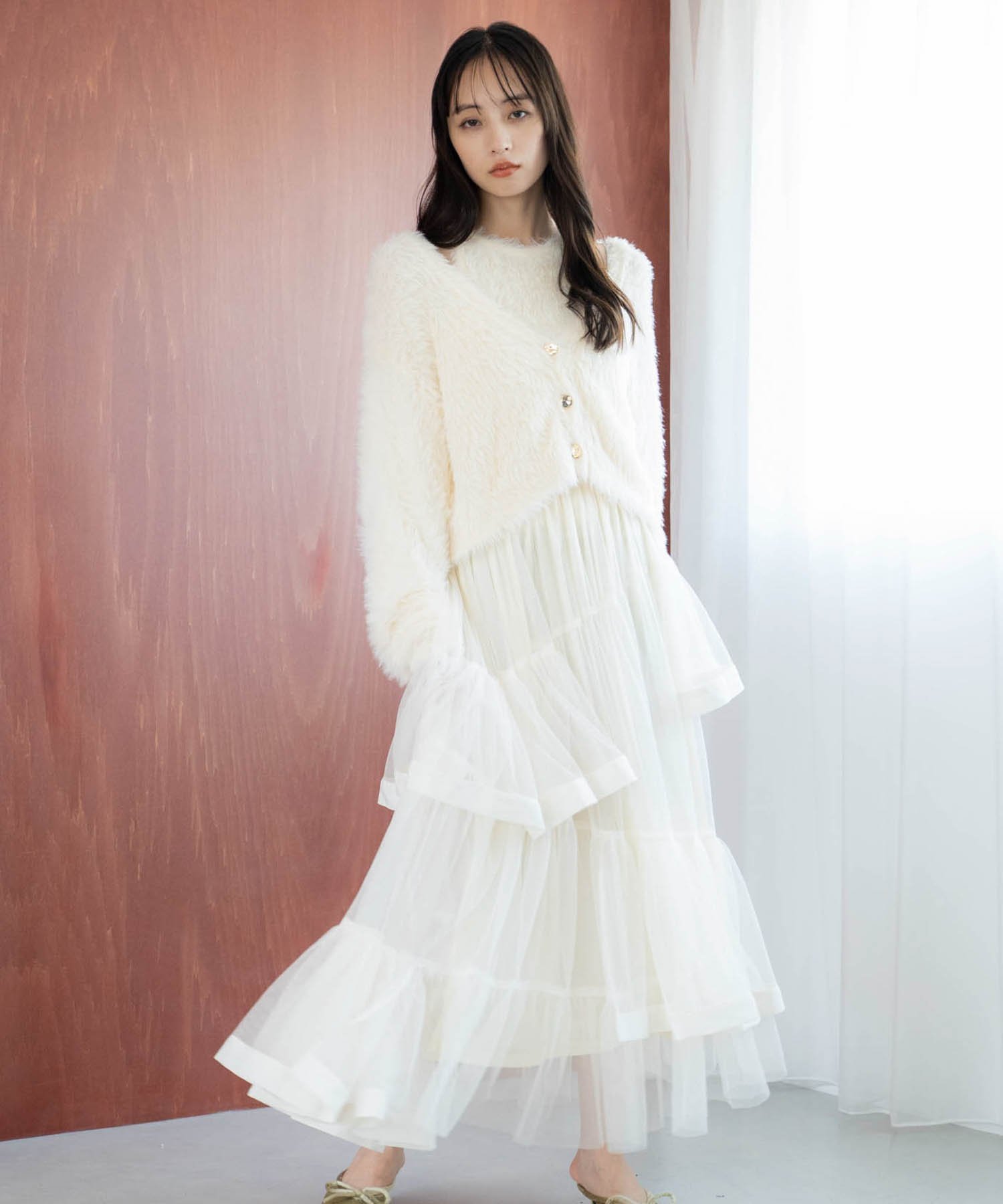 【SALE/10%OFF】Noela チュールフリルスカート ノエラ スカート ロング・マキシスカート ピンク ホワイト【送料無料】