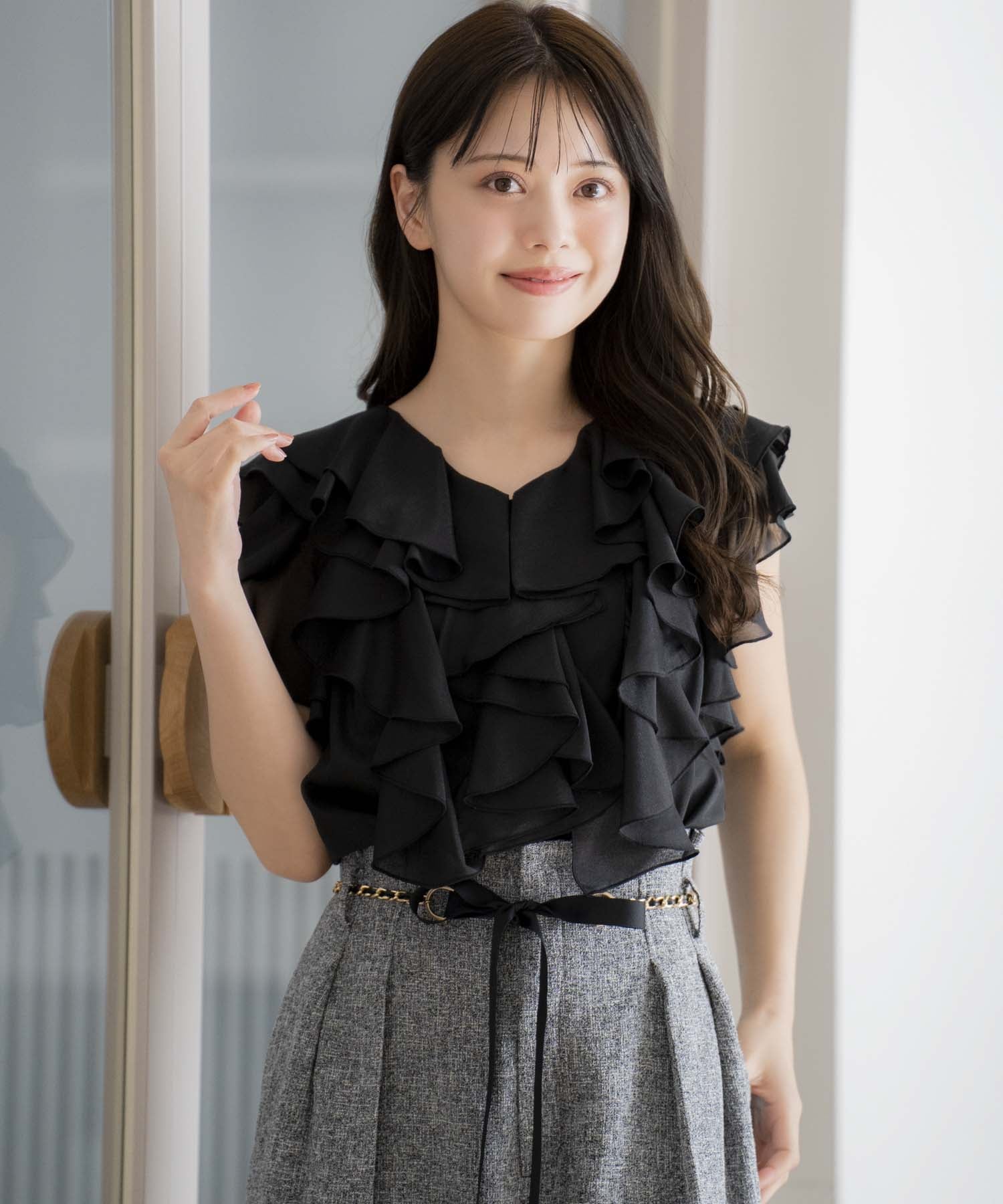 【SALE/30%OFF】Noela ラッフルフリルブラウス ノエラ トップス シャツ・ブラウス ホワイト ブラック ブルー【送料無料】