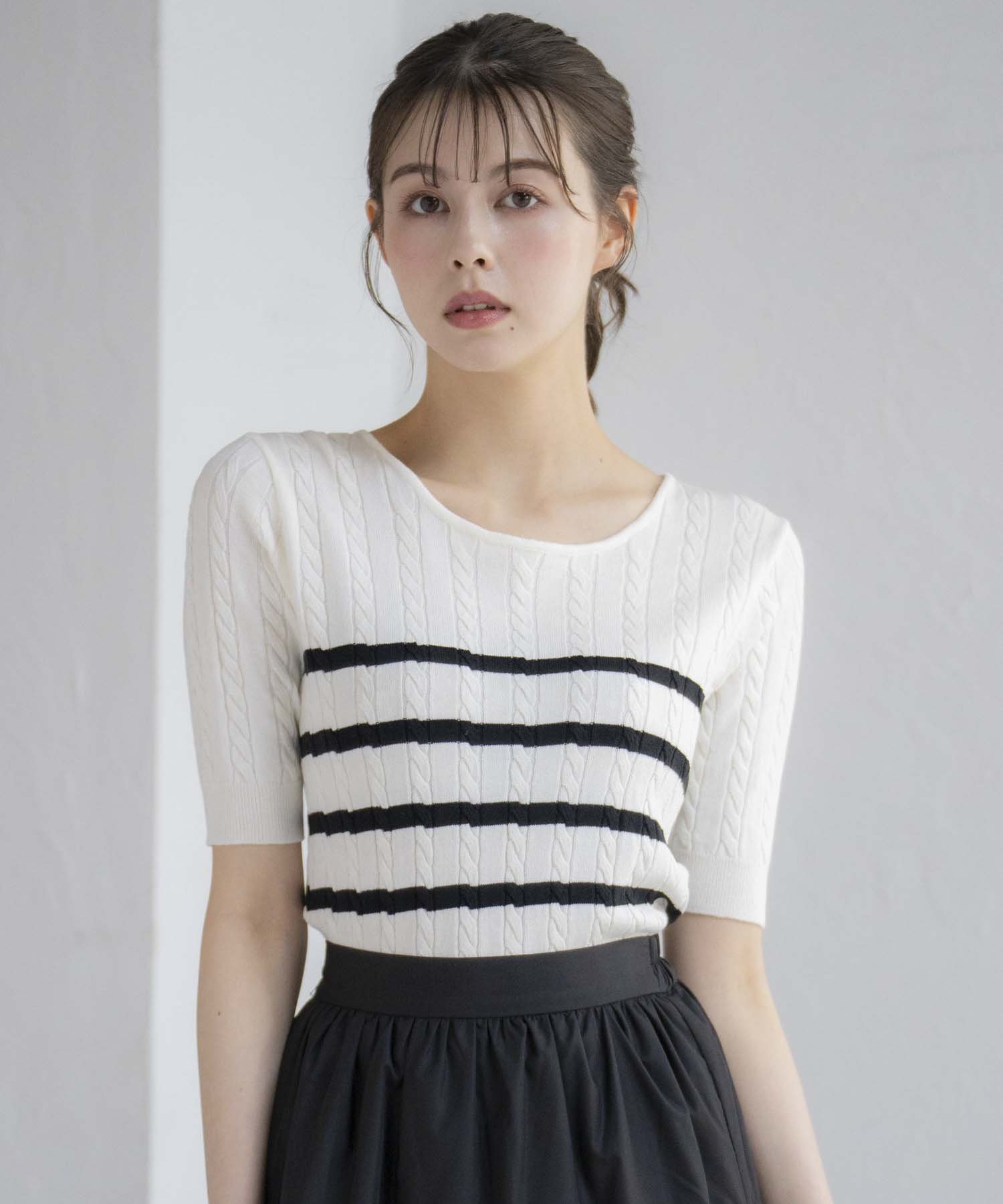 【SALE/60%OFF】Noela ボーダーケーブルニット ノエラ トップス ニット ピンク ブラック