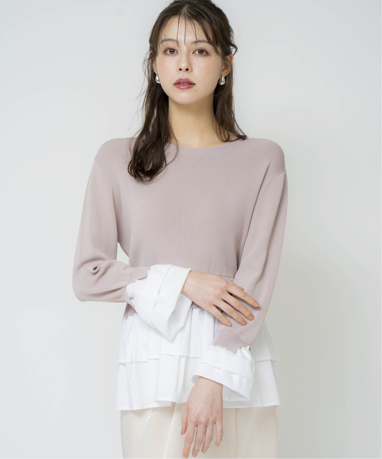 【SALE/70%OFF】Noela ブラウスレイヤードニット ノエラ トップス ニット パープル ブラック ピンク