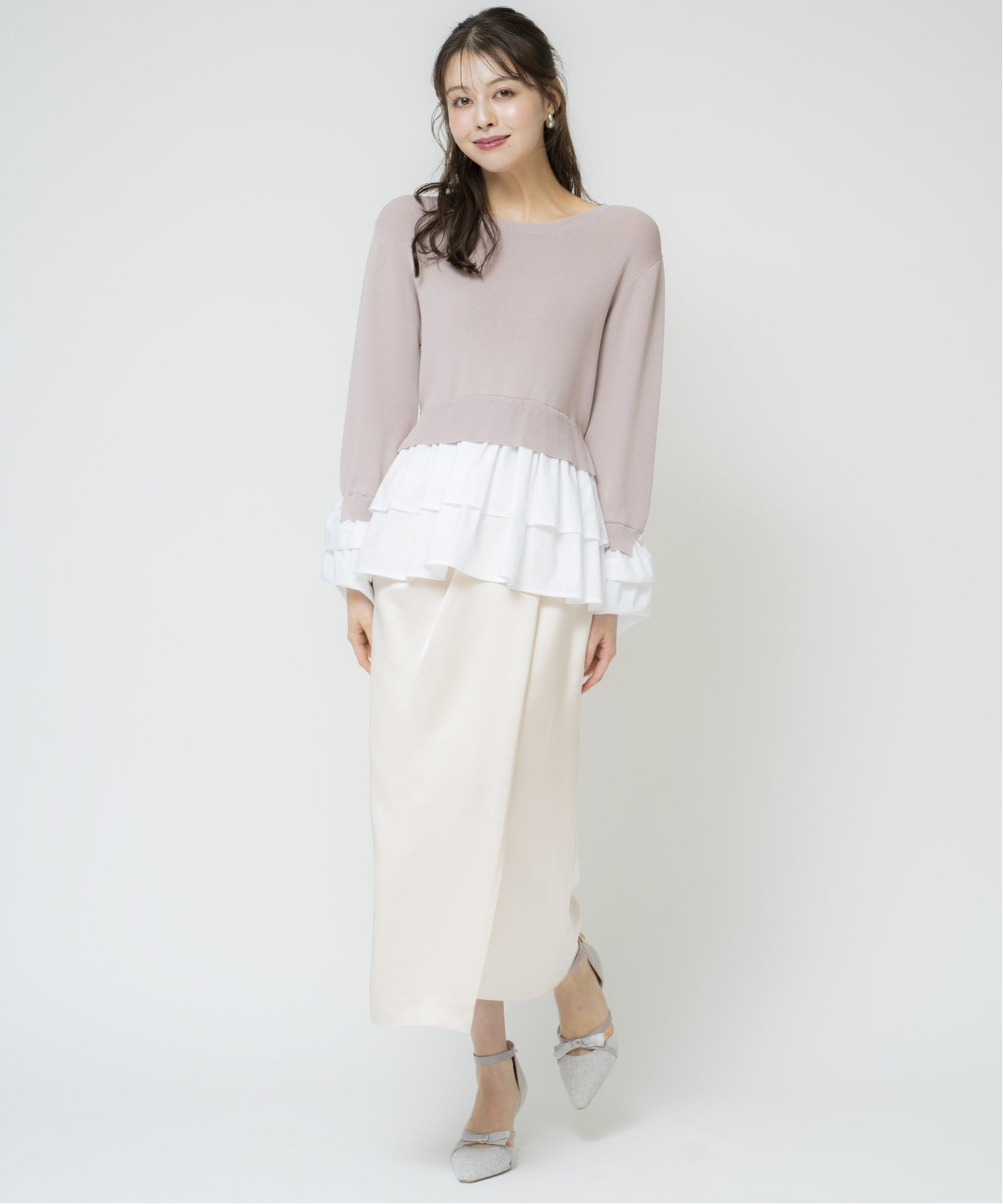 【SALE/50%OFF】Noela 【15周年】ニットチュールドッキングワンピ ノエラ ワンピース・ドレス ワンピース ベージュ ピンク【送料無料】