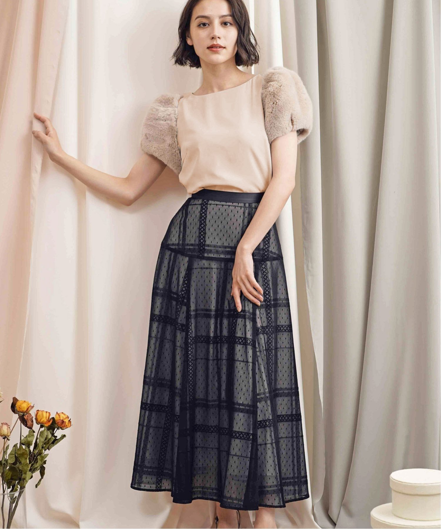 【SALE/70%OFF】Noela パターンフロッキーレーススカート ノエラ スカート その他のスカート ブラウン ブラック ベージュ【送料無料】