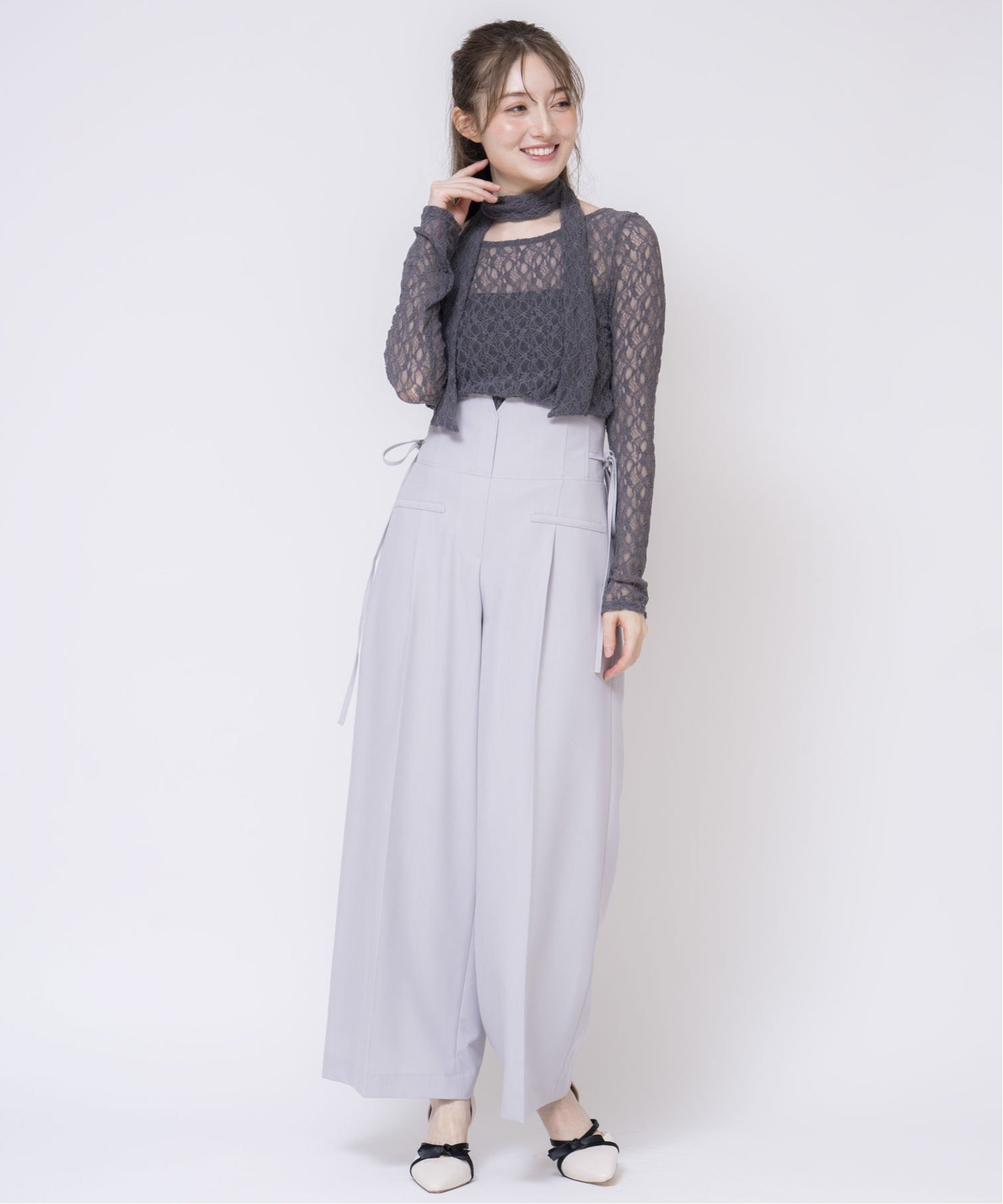 【SALE/60%OFF】Noela サイドリボンワイドパンツ ノエラ パンツ その他のパンツ ベージュ グレー ネイビー【送料無料】