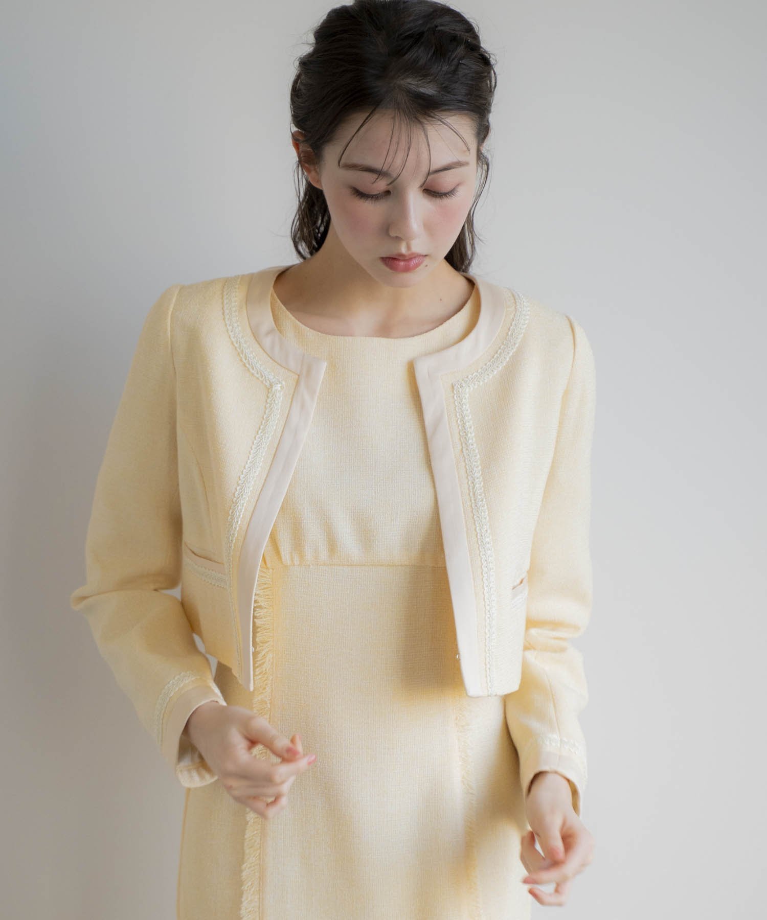 【SALE/60%OFF】Noela ツイードジャケット ノエラ ジャケット・アウター ノーカラージャケット ベージュ ブラック イエロー【送料無料】