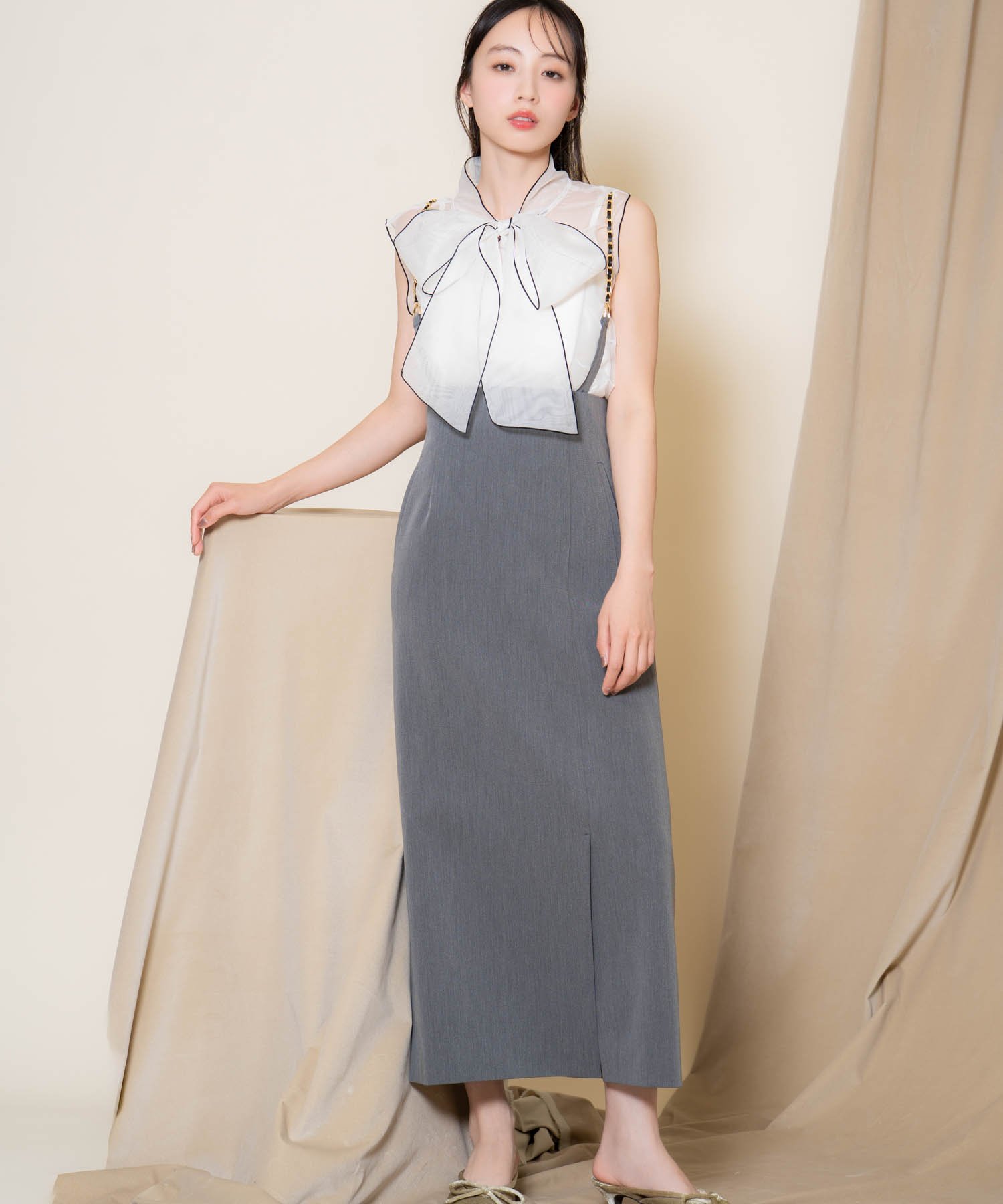 【SALE/30%OFF】Noela チェーンサス付きタイトスカート ノエラ スカート ロング・マキシスカート ブラウン ベージュ グレー【送料無料】