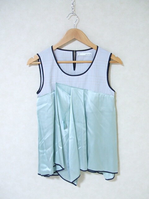 petite robe noire 未使用 PRO-15SD02 定価28000 ドレープ ブラウス ライトグリーン ライトブルー レディース プティローブノアー【中古】2-0607S