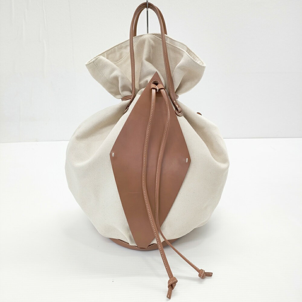 petite robe noire キャンバス レザー 丸型バッグ 巾着バッグ オフホワイト ブラウン レディース プティローブノアー【中古】5-0707G