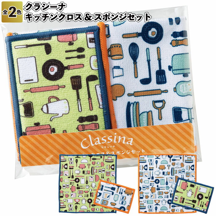 【クラシーナ キッチンクロス&スポンジセット】景品 粗品 プチギフト ノベルティー 掃除 布巾 洗浄