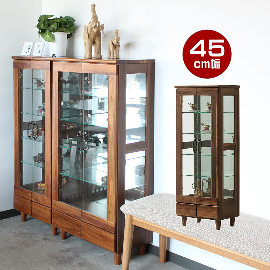 [割引品]+12/4 20:00〜 5%OFFクーポン配布 ノベル 45cm幅 コレクションケース 【送料無料】 コレクション コレクションボード コレクション ケース 英国風 北欧風 おしゃれ モダン ウォールナット 無垢材 引き出し付き 引き出し 北欧 イギリス風 強化