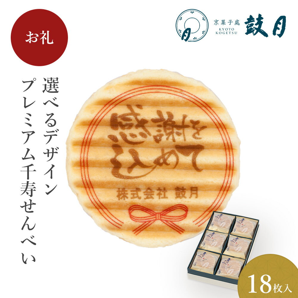 鼓月 選べるデザインプレミアム千寿せんべい (h.感謝)18枚入 / お祝い返し 引き出物 個包装 プリント ノベルティ 記念品 イベント 卒業 卒園 粗品 出産祝 結婚祝 ギフト 京都 内祝 プチギフト 敬老の日 贈り物 和菓子 洋風 クリーム 老舗