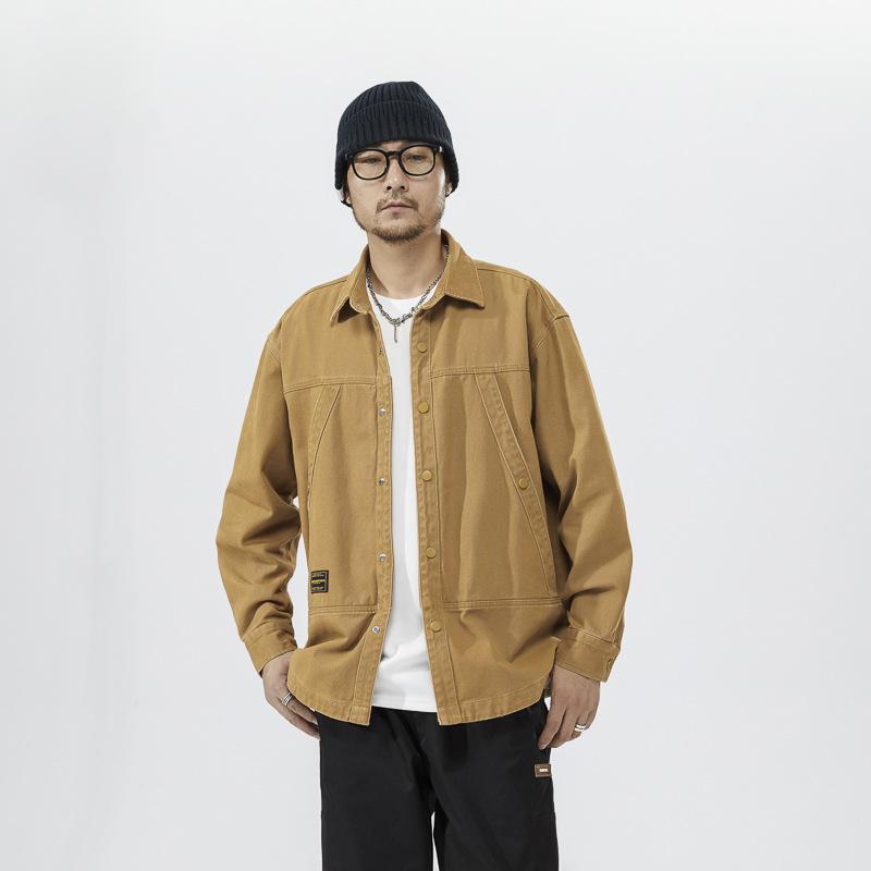 ・機能: 耐摩耗性・カテゴリ: ジャケット・スタイル: アーバン・ネックライン: 襟付き・フィット: ルーズフィット・前立て: シングルボタン・柄: 無地・対象: 青年層・主な素材: 綿100%・シーン: デイリー・デザイン詳細: 徽章付き・裾デザイン: ストレートヘム・加工: ノーアイロン加工・ポケット: ステッチ入りパッチポケット・着用スタイル: アウター・袖丈: 長袖・カラー展開: ブリックイエロー、ミリタリーカーキ・サイズ展開: M、L、XL、XXL、3XL・性別: メンズ