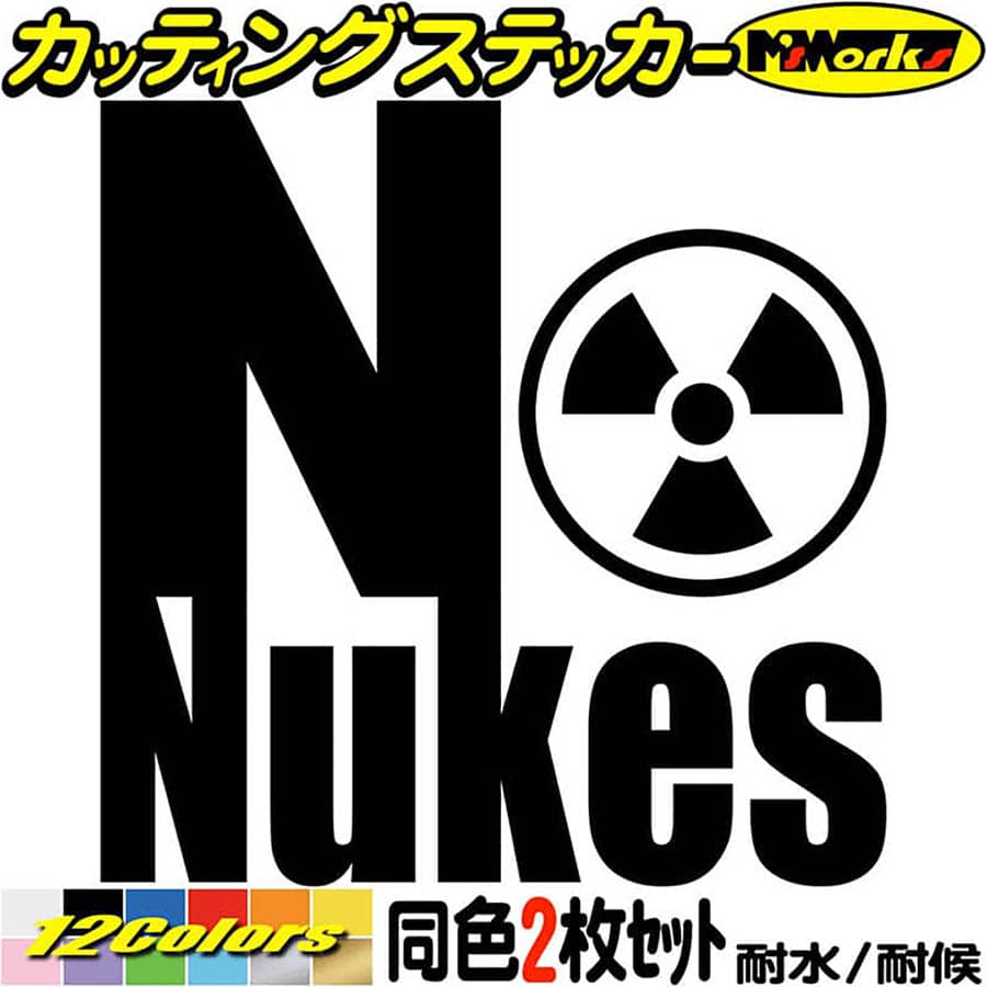 脱原発 ステッカー 脱原発 ( 原発反対 核廃棄 ) No NUKES!! (2枚1セット) E1 カッティングステッカー 全12色 車 バイク かっこいい 主義 主張 アピール 未来の為 No NUKES 傷 キズ 隠し アウトドア おもしろ 自動車 防水 耐水 転写 切り文字 シール