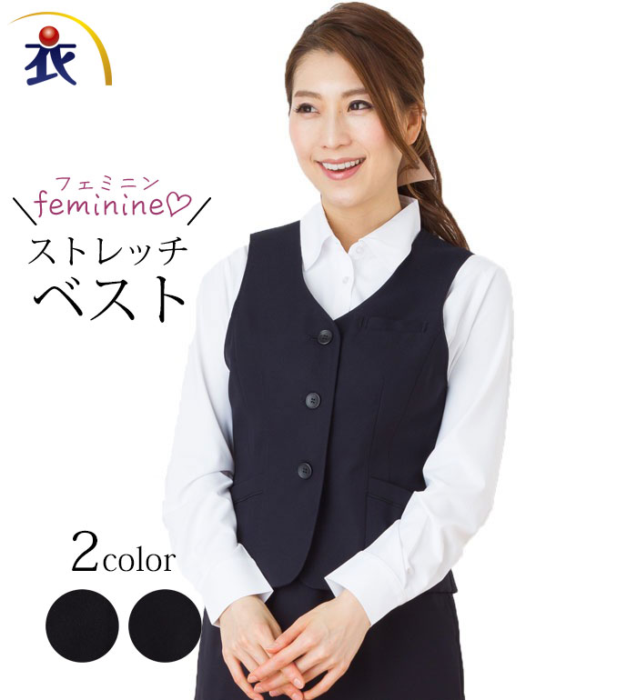 ベスト NUOVO ヌーボ ネイビー ブラック 紺 黒 レディース 女性用 制服 事務服 オフィスウェア ストレッチ シンプル 定番 上品 SV3005 刺繍 プリント ブラックフライデー