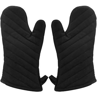 オーブンミトン - Nuovoware 耐熱 滑り止め 綿製 キッチン用 オーブンミトン・手袋 2個セット 長いタイプ BLACK【素材】高品質な綿素材を採用し、柔らかくて手触りがよいです。【耐熱】耐熱温度260℃のプロ仕様に作られている綿製手袋で、生地が厚く、丈が長いので、熱いものを持つ時も手や腕を熱から守ってくれます。【滑り止め】 ミトンの表面には凹凸加工になって、滑り止め性が抜群【収納便利 】収納に便利な吊り下げ用のストラップ付き、使わない時はキッチンの壁に掛けることができます。【多用途】耐熱性と滑り止めに優れ、ホームベーカリー、オーブン、電子レンジ、グリルで調理した鉄鍋などで熱した容器や食品の取り出し、冷凍品の取り扱いなど幅広く使えます。