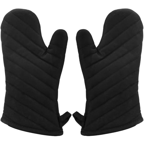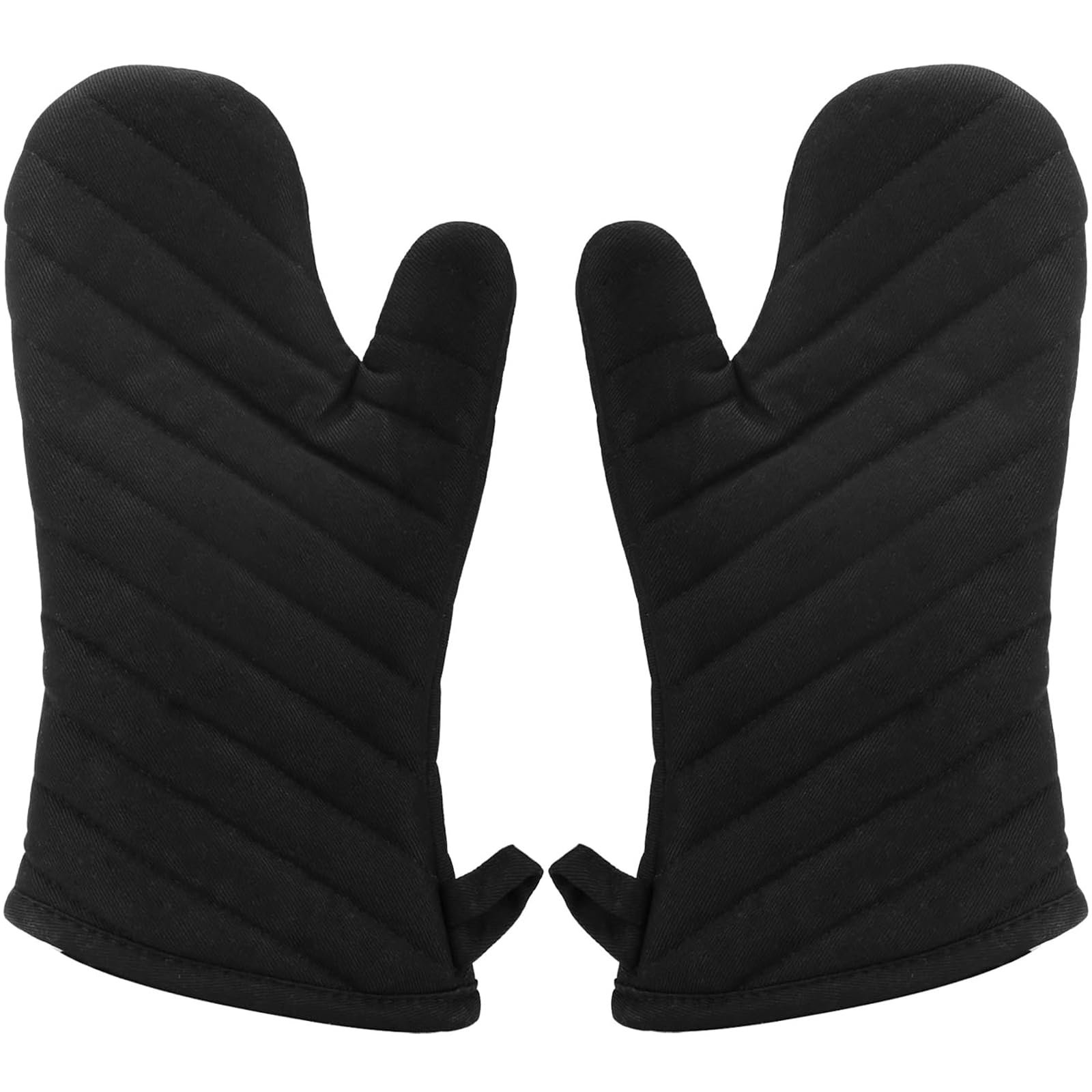 【送料無料】オーブンミトン - Nuovoware 耐熱 滑り止め 綿製 キッチン用 オーブンミトン・手袋 2個セット 長いタイプ BLACK