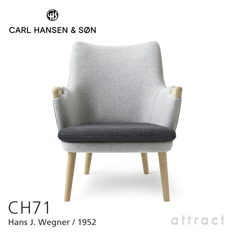 Information こちらの製品は受注品の為、お支払方法に代金引換をご利用頂けません。クレジットカード決済または銀行振込をご利用下さい。(※決済後またはご入金確認後に正式発注手配となります)また、メーカー在庫がございます国内在庫品については、ご注文より約2〜3週間程度でのお届けが可能です。(※受注生産品となる場合やタイミングによっては、デンマークからのお取寄せとなりますのでお届けに約4〜5ヶ月程度必要となります。予めご了承くださいませ) ※お支払い方法はこちら(代引・時間指定不可) ※画面上と実際の商品の色の見え方は若干異なります。 Product Details ■サイズ W700×D700×H840×SH410×AH620mm ■仕様 オーク、ソープフィニッシュ、ファブリック ■ファブリック(本体) Divina Melange 3(#120) by Kvadrat ■クッション(座面) Divina Melange 3(#180) by Kvadrat ■保証 正規メーカー5年間保証 ■デザイナー Hans.J.Wegner(ハンス・J・ウェグナー) ■ブランド Carl Hansen & Søn(カール・ハンセン&サン)時を超えて愛されるタイムレスな魅力 限られたスペースでも寛ぎの時間をともに Carl Hansen & Son(カールハンセン & サン) ミニベア ラウンジチェア CH71 オーク(ソープフィニッシュ) CH71 ラウンジチェア 幻の「ミニベア」が遂に復刻 デンマークの巨匠ハンス J. ウェグナー、1952年のデザインで 通称「ミニベア」と呼ばれている幻のラウンジチェアが CH71 ラウンジチェアとして現代に復刻しました。 バランスの取れた美しいプロポーション、 フレームの曲線美と高度な張地加工を実現したクラフトマンシップ。 極上の使用感をコンパクトなフォルムに落とし込んだ まさに、ラウンジチェアの逸品です。 リビングや自室など限られたスペースでも ゆったりと至福の時間をお寛ぎいただけます。 コンフォートを創り出す卓越した職人技巧 機能と美しさの融合、洗練されたフォルム 木材や張り加工への深い造詣から生まれた逸品 スレンダーなフレームが創り出す、流れるような彫刻的なフォルム。CH71 ラウンジチェアはデンマークを代表する家具デザイナー、ハンス J. ウェグナーならではの木材や張り加工への深い造詣から生まれた逸品です。機能と美しさの融合、洗練されたフォルム、時を超えて愛されるタイムレスな魅力、「椅子の巨匠」と称されるハンス J. ウェグナー独特のセンスが映える、1952年のデザインです。 優雅なフレームの曲線と高度な張地加工 優雅な曲線を描くフレームに沿うように施される、高い技術を要する張地加工がデザインの重要な要素となっているCH71 ラウンジチェア。流れるようなこの見事な張地加工には、家具職人としても一流の腕をもったウェグナーの知識と経験が活かされています。 優美で柔らかなフォルムとクラフトマンシップ こだわり抜かれたプロポーション 限られた空間での使用を考慮したコンパクトなフォルム そして、ウェグナーは椅子のプロポーションにもこだわっています。限られた空間での使用を考慮した、優雅な曲線を描くコンパクトなフォルムが追求されました。木製の脚とアームはオーク材または、ウォルナット材の各種仕上げをご用意しました。また、張地も色やテクスチャーの異なる組み合わせにより、多数のバリエーションから選ぶことができます。 Hans.J.Wegner(ハンス・J・ウェグナー) 1914年、デンマークのトゥナーに生まれる。弱冠17歳で家具職人のプロライセンスを取得後、1939年よりアルネ・ヤコブセンとエリック・モラーの共同事務所に入所、オーフス市庁舎の家具デザイン等を手掛ける。1949年、カール・ハンセン&サン社との仕事を開始。翌1950年に発表された「Yチェア」は、氏の代表作として、今なお世界中で高い評価を得ています。ミラノトリエンナーレのグランプリをはじめ受賞歴は数多く、1995年には永年の功績をたたえ、故郷のトゥナーに「ウェグナー美術館」がオープン。およそ70年の創作期間で手掛けた椅子のデザインは500種類以上にのぼるといわれます。 Carl Hansen & Søn社のブランド・パートナーショップ(正規取扱販売店)です 当店アトラクトは、カール・ハンセン&サン ジャパンの承認を得たブランド・パートナーショップ(正規取扱販売店)です。誇りや情熱を持った家具職人と生産メーカー、デザイナーの意図した想いを無視する行為である、安価で大量に販売する目的の為に非正規のルートで輸入され、保証や修理などのサポートもない「並行輸入品」とは異なり、当店で取扱っておりますカール・ハンセン&サン製品はすべて、デンマーク国内で生産されカール・ハンセン&サン ジャパンより販売している「正規品」です。デザイナーのクリエイティブな発想と努力、職人達の優れたクラフトマンシップが伝わる、本物のカール・ハンセン&サン製品は、当店アトラクトにてお求めください。 Carl Hansen & Søn(カール・ハンセン&サン) ハンス・J・ウェグナーの代表作、Yチェアで有名なデンマークの家具メーカー。1908年創立当初はクラシックソファなどのオーダーメイド