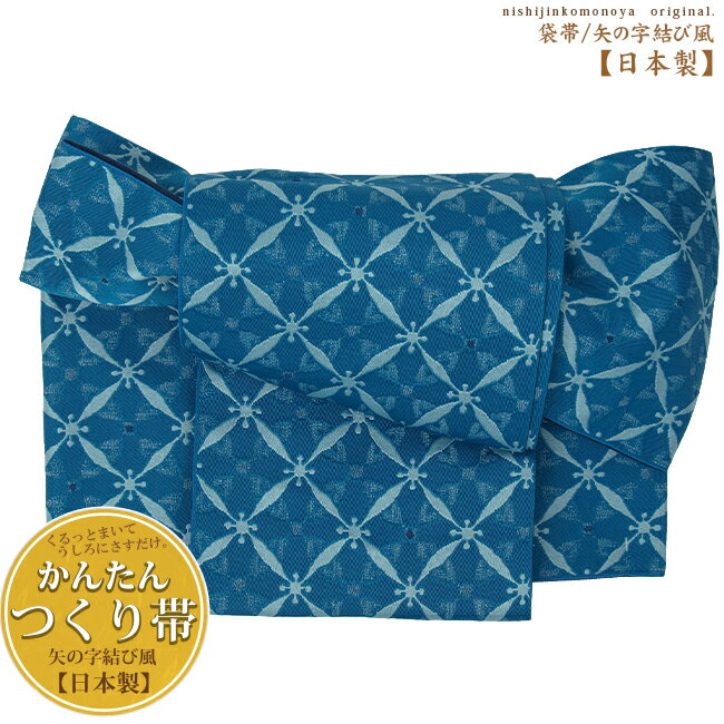 【作り帯番号:BY-5】【日本製】オシャレで簡単♪ゆかた作り帯(結び帯)【袋帯】矢の字結び風(お太鼓風)上品で使い勝手の良い柄とカラバリ!コーディネートしやすい帯☆藍色、青大人の浴衣作り帯/結び帯