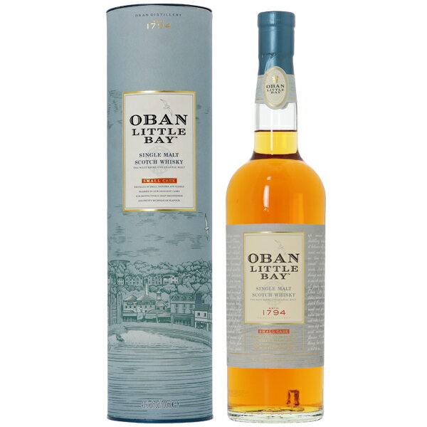 リトル・ベイは、ゲーリック語で『小さな港』を意味するオーバン蒸留所から新たに定番として2015年にリリースされました。 3タイプの樽(シェリー樽、ニューオーク樽、アメリカン・ホグスヘッド樽)熟成の異なる熟成年数の原酒を混ぜ合わせ、熟成が早く進むといわれるスモール・カスクで短期間の追加熟成を行いました。 香りは、海塩、オーク、タンニン、エスプレッソ、シトラス。 味わいは、スパイス、クリスマスケーキ、ブラウンシュガー、オーク、スモーク。 アルコール度数:43% 容量:700ml ハイランドモルト