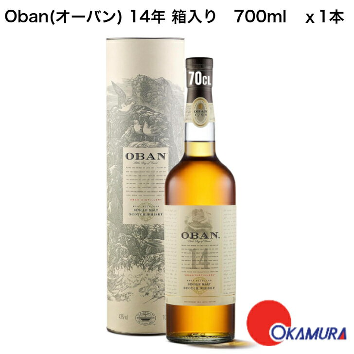 【 ギフト包装可能 】 お酒 ギフト ウイスキー ハイランド シングルモルト OBAN ( オーバン ) 14年 43° 700ml ≪ 正規品 筒状専用箱入り ≫ クラシック・モルト・シリーズのひとつとしての存在感ゆえに、その味わいや特徴についてはあまり語られることが少ないと思われています。 オーバン14年は、クラシック・モルト・シリーズの中でもスイートさ、フルーツ感の濃厚さは白眉で、さらに微妙なピート感もあるということで、全体的に振り幅が大きい力強い酒であるといえる逸品です。