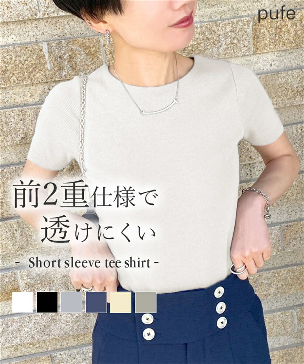 前身二重 半袖シャツデイリー使いに大活躍するリブ半袖Tシャツ。前身頃が二重なので、インナーを気にせず1枚で着れるのが嬉しいポイント。伸縮性のあるリブ素材と使用しているので程よいフィット感で着心地◎体のラインが響きにくいサイズ感も魅力のひとつ。シンプルなデザインなので、どんなボトムとも相性抜群。ジャケットなどのインナーにもおすすめです。素肌に着れるソフトな肌あたりでロングシーズン楽しめます。同素材の長袖Tシャツバージョンもございます。■カラー:6色展開【FREE】身幅 約39.5、肩幅 約32、袖丈 約19、着丈 約61※平置き採寸のため若干のブレがございます。※( )で表記されている数字はヌードサイズです。ヌードサイズとは衣服を身につけない身体のサイズです。お客様ご自身の身体サイズと比較してお選びください。 ■素材: ポリエステル 62%、コットン 33%、ポリウレタン 5% ■お手入: >>商品のお取り扱い方法 ■原産国:【pufe】前身二重 半袖シャツ/ドノバン(DONOBAN)01ホワイト02ブラック03グレー04ネイビー05エクリュ06グレージュ画面上と実物では、多少色具合が異なって見える場合がございます。