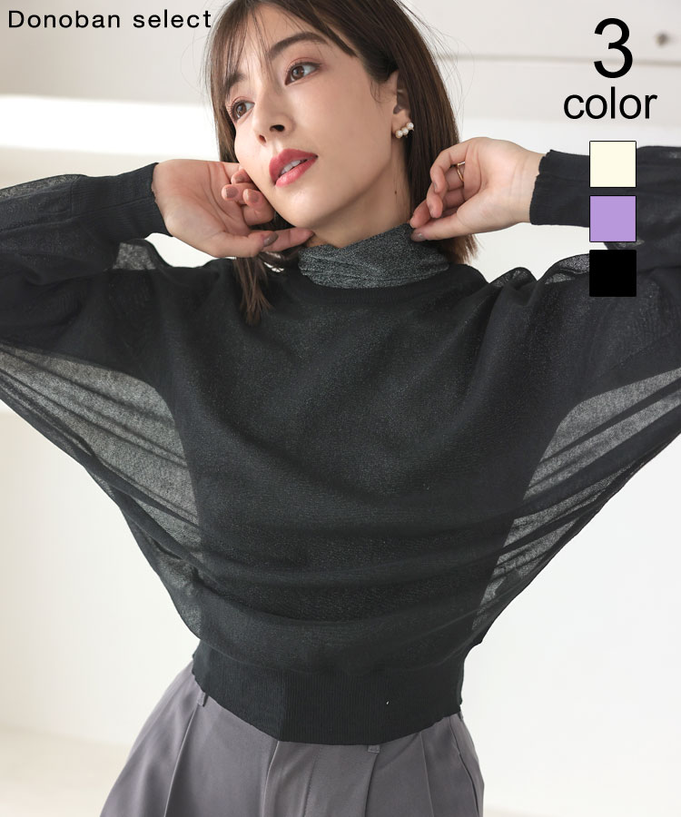 【セール特別価格!5390円→1350円】シアー ラメ ドルマン Donoban トップス カットソー レディース 長袖 ロンt クルーネック プルオーバー シアートップス シースルー レイヤード ゆったり 透け感 シンプル 大人 重ね着 インナー 体型カバー ドノバン