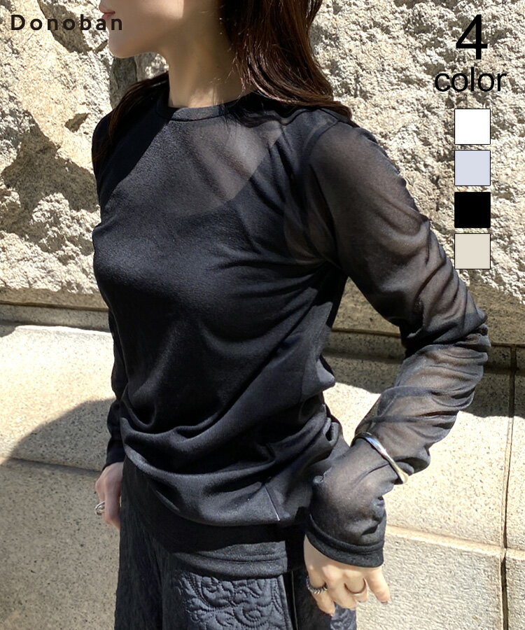 【クーポン利用で4664円!】トップス カットソー レディース 長袖 ロンt クルーネック プルオーバー シアー シースルー レイヤード ゆったり 透け感 日本製 日焼け防止 薄手 Donoban シンプル 大人 重ね着 インナー 体型カバー ドノバン