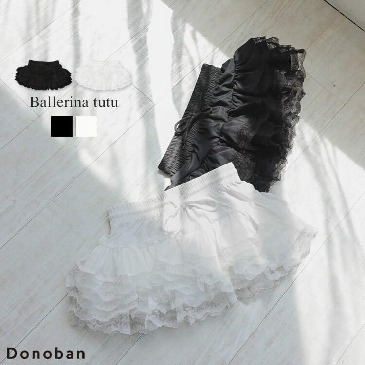 【クーポン利用で4158円】レディース 大人 ボトムス インナー スカート チュチュ インナースカート フリルスカート レース フリル ウエストゴム フェイクレイヤード 重ね着風 Donoban|付け裾 つけ裾 レイヤード 人気 体型カバー 衣装 ダンス お揃い ドノバン