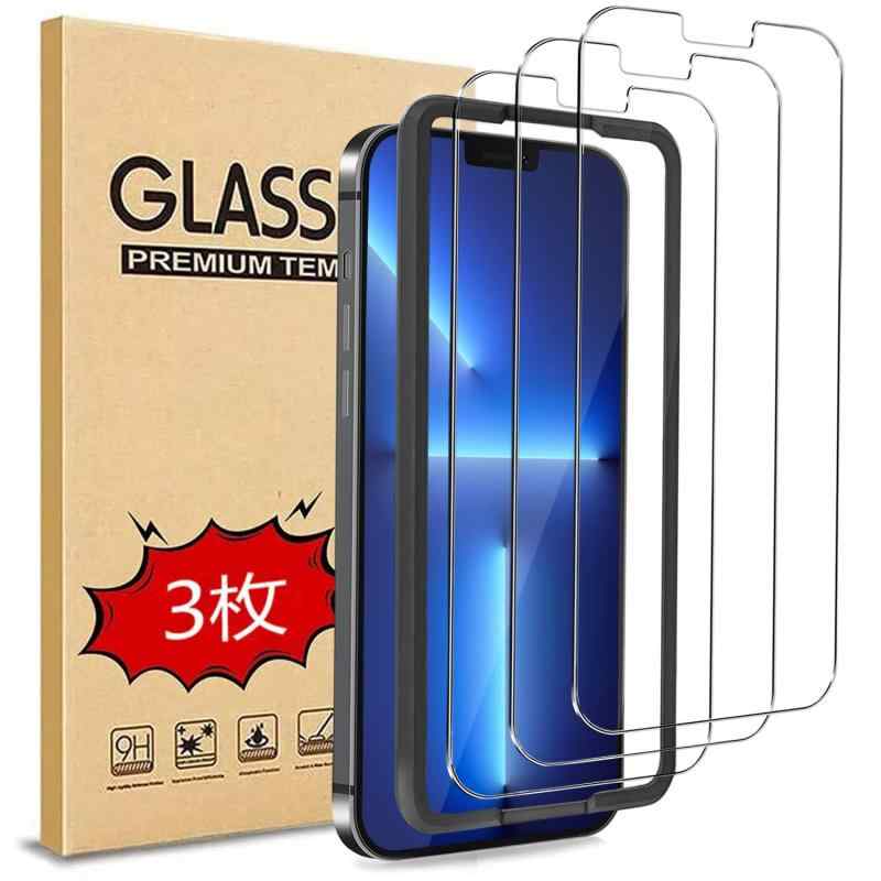 iPhone13 Pro/iPhone 13 ガラスフィルム 【3枚セット】 液晶 保護 ガラス フィルム iPhone13Pro 対応 ガイド枠付き