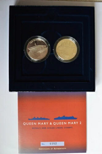 クイーン・メリー号およびクイーン・メリー2号の銀製プルーフメダルとオーシャンライナーの切手