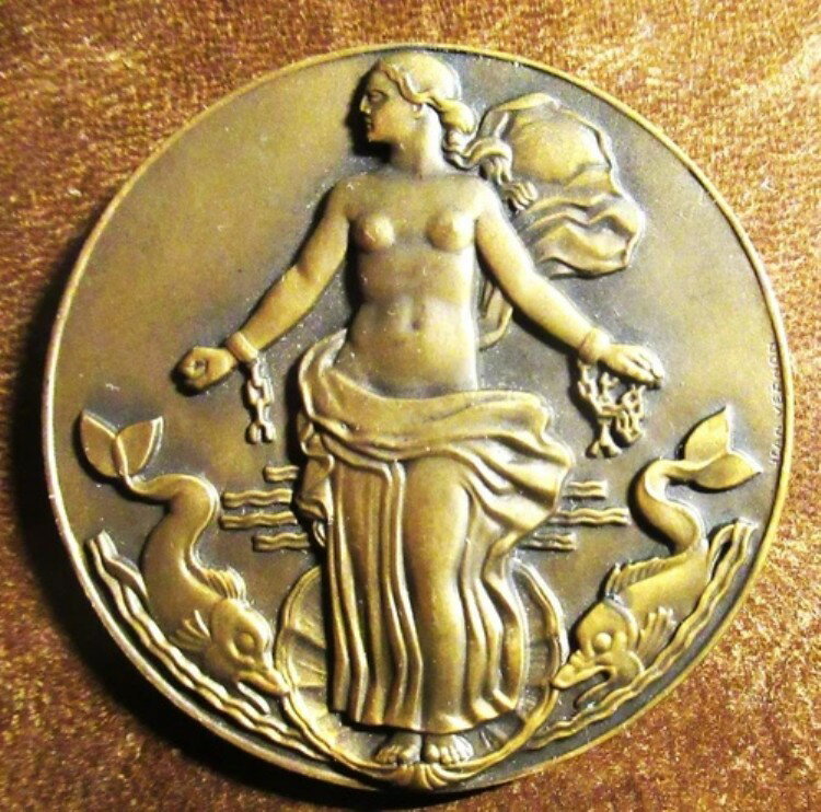 フランス- 1952- SS リベルテ- オーシャンライナー- ヴィーナス & ドルフィンズ - 銅メダル - レア
