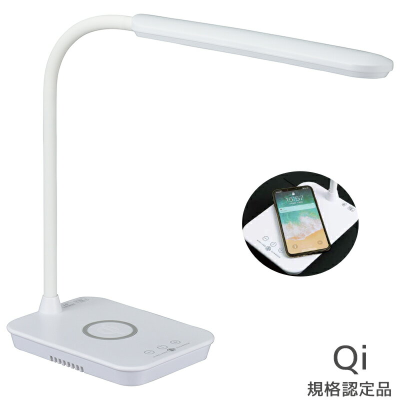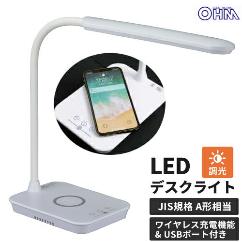 デスクライト スマホ充電 ワイヤレス充電 Qi 無段階調光 おしゃれ led 学習机 usb 明るい ohm ホワイト_ODS-LDQ338K-W 06-1844 オーム電機