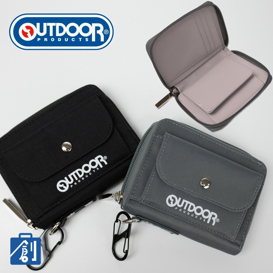 【30日・1日48H限定 店内ポイント最大10倍】財布 メンズ 二つ折り 二つ折り財布 ブランド OUTDOOR PRODUCTS ボックス型小銭入れ ラウンドファスナー 2つ折り財布 ウォレット カジュアル 中学生 高校生 大人 シンプル ポケットロゴ カラビナ ODS-0072 メール便