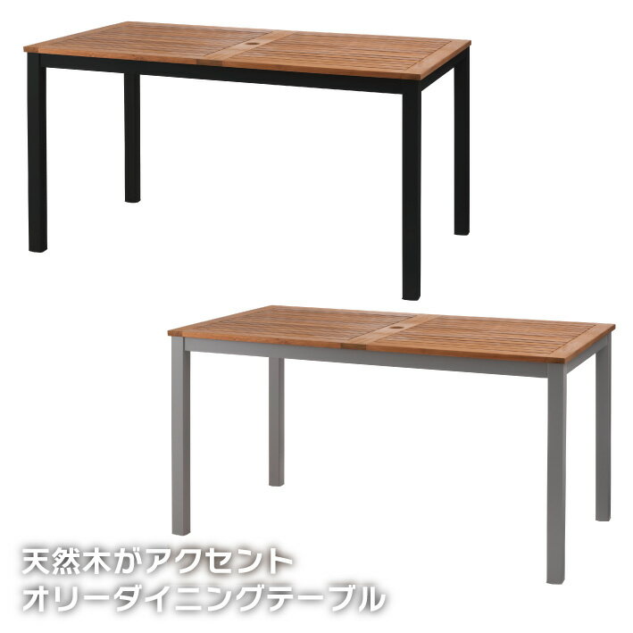 天然木のユーカリがアクセント!オリー ダイニングテーブル -POINT- ・天然木の風合いと軽量なアルミの組み合わせ ・シャープなラインでシンプルにまとめたフォルムに天然木の表情を加え、スタイリッシュな中にあたたかみのあるシリーズ ・脚先にはアジャスターが付いているので、ガタツキ調整が可能 ・天板中央にはガーデンパラソル用のパラソルホール付き -サイズ-(約) W140×D80×H74cm 重量:15.0kg -材質- 天然木(ユーカリ)オイル仕上、アルミ(粉体塗装) -生産国- ベトナム -注意- ・お使いのモニターの発色具合によって、実際のものと色が異なる場合がございます。 ・製品本来の目的以外の用途には使用しないください。 ・常時外置きはできません。特に木部は直射日光や雨ざらしの環境下では劣化が早まりますので、屋根付きのテラス等でご使用ください。 ・こちらの商品は組立式です。 ・こちらの商品は北海道・沖縄・離島にはお届けできません。 -在庫について- 当店は楽天市場以外に複数のショップ運営や業販も行っているため、ご注文を頂いた時点では在庫有りと表示されている商品でも、システム上のタイムラグや同一商品への注文集中により、ご注文後に在庫切れとなる場合がございます。 在庫切れの場合はキャンセルとさせていただきますのでご了承ください。 -配送方法について- ご注文の際、メール便を選択していても、商品のサイズや数量によっては自動的に宅配便に変更させていただくことがございます。 宅配便への変更ではなく、メール便のままで2個口や3個口などの複数配送になる場合もございます。 また、伝票に記載される出荷元情報は当店の店名ではなく、社名やメーカー名になる場合がございます。 ご了承ください。 -返品・交換について- サイズ変更やイメージ違い、その他お客様ご都合による返品・交換はお受けできません。商品に欠陥がある初期不良の場合のみ対応させていただきますので、その場合はお手数をおかけしますが、商品到着後7日以内に問い合わせフォームからご連絡をお願いいたします。 7日以内にご連絡いただけない場合は対応できません。 ご連絡なく商品を返送された場合は、返金や交換はできませんのでご注意ください。 店内検索用ワード カフェテーブル 机 天然木 ユーカリ 木製 アルミ ベランダ テラス ガーデン 庭 屋外 外 シンプル 4人 アジャスター付き おしゃれ かわいい ブラック 黒 グレー カフェ 軽量 ガタツキ調整可能 庭 バーベキュー BBQ パーティー 軽量 韓国風 韓国インテリア 韓国雑貨 カフェ ブラウン 木製 ダイニング ダイニングテーブル メーカー希望小売価格はメーカーサイトに基づいて掲載していますオリー ダイニングテーブル ODS-74