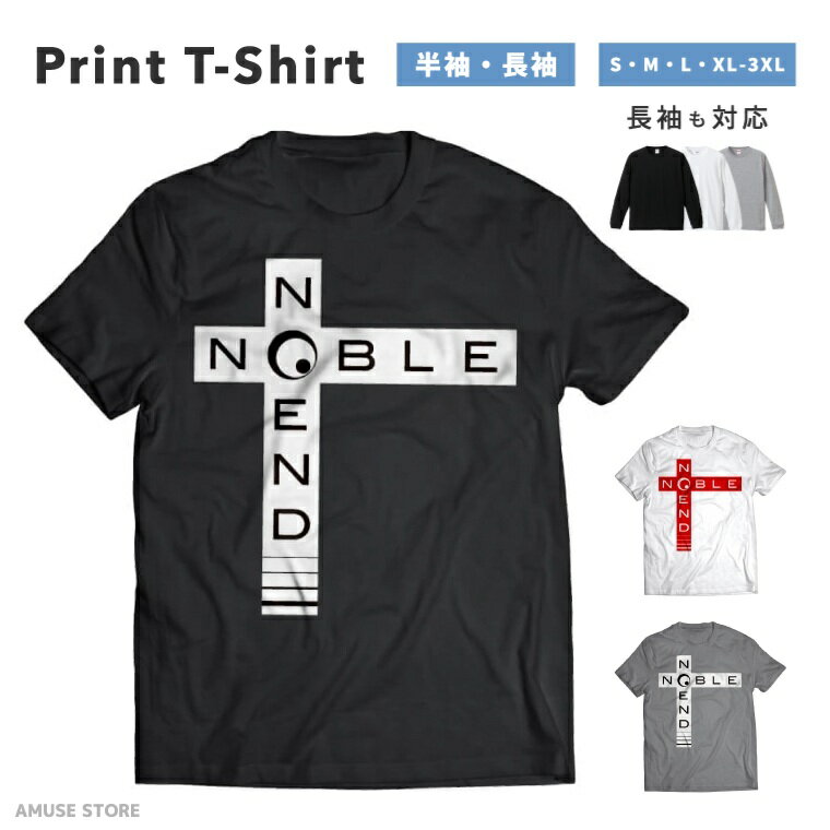 Tシャツ メンズ 半袖 長袖 おしゃれ プリント 綿100% 大きいサイズ 小さいサイズ レディース コットン ブラック ホワイト グレー カジュアル ファッション 5.6オンス 白Tシャツ 黒Tシャツ 推し かわいい NOBLE NOEND 十字架 モノクロ