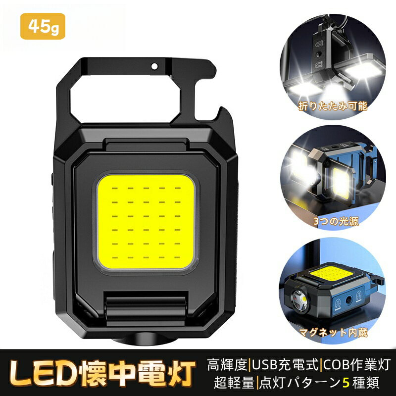 Black Friday P5倍●20日10%OFFLED 懐中電灯 LED投光ライト 投光器 LED作業灯 COB作業灯 45g 無段階調光 ミニ投光器 マグネット内蔵 小型 800ルーメン ミニ懐中電灯 USB充電式 5つ点灯モード 無段階調光 高輝度 栓抜き 強力磁石付き 90°自由に調整 IPX4防水 1個/2個セット