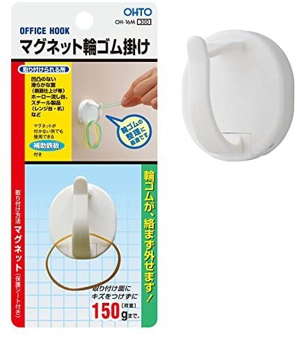 オート マグネット輪ゴム掛け マグネットフック 白 OH-16M 1個入り OHTO
