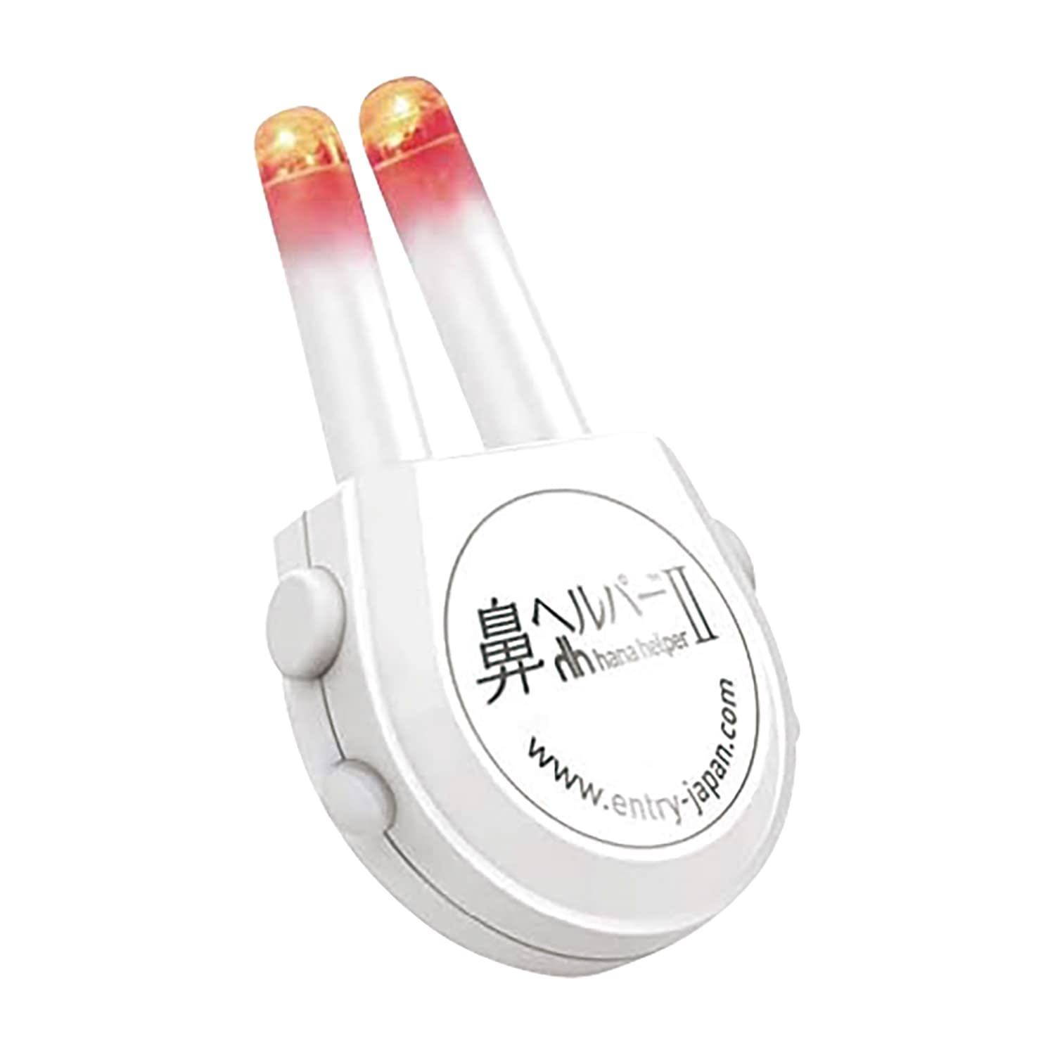 商品名 鼻ヘルパー2 内容品 プローブカバー付本体、充電用USBケーブル1本、交換用プローブカバー1ペア、取扱説明書 照射光 赤色光660nm(+/-5nm) 近赤外線:940nm(+/-5nm) 電源 DC 3.7V/260mAh(リチウムイオン電池) 電池 最大300サイクルの充電 充電1サイクルで約90回使用(45日間) 広告文責 ナチュラルノート 078-855-6559 輸入販売元 株式会社エントリージャパン(中国製) <使用上の注意> ・ペースメーカーなどを使用している方には適していません。 ・不整脈のある方は事前に主治医にご確認ください。 ・6歳未満のお子様には適していません。鼻腔に赤色光660nm/近赤外線990nmを照射します。 1回3分、1日2回 充電式、1回の充電で約45日間使用