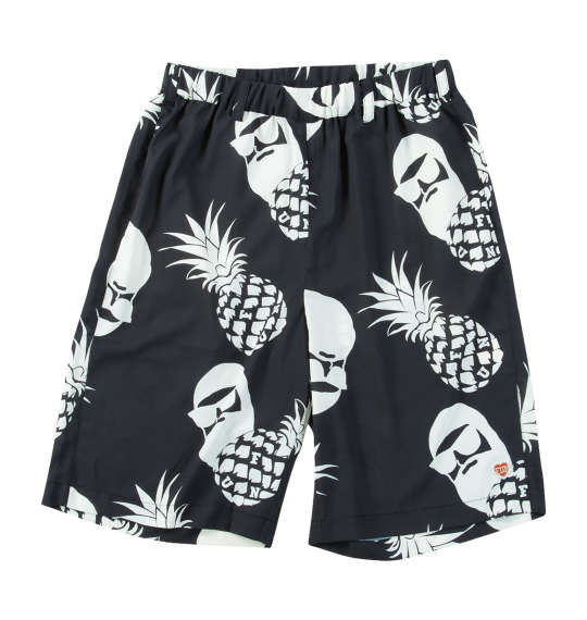 大きいサイズ メンズ FUN for modemdesign PINEAPPLE OJI柄 アロハ ショーツ ブラック×ホワイト 1274-5540-2 3L 4L 5L 6L 8L
