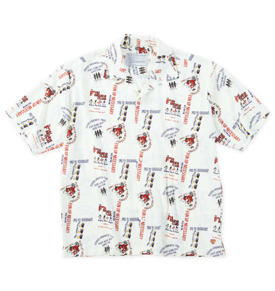 大きいサイズ メンズ FUN for modemdesign LIFE OJI柄 半袖 アロハ シャツ オフホワイト 1277-5276-1 3L 4L 5L 6L 8L