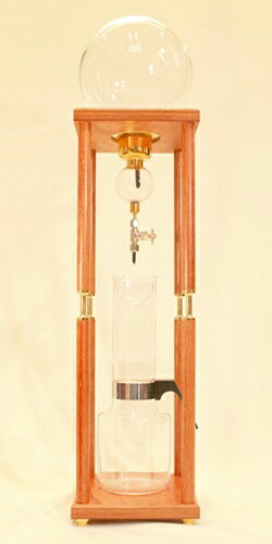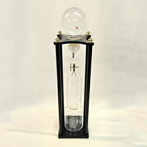 【ご注意】 沖縄・離島へのお届けは別途『6,200円(税抜)』の送料が発生いたします。 こちらの商品は代引き不可となります。 | 15杯用 | ・本体サイズ:250×240×990mm ・製造国:日本製 【付属品】 ・木枠一式 ・ウォーターボール ・ロート ・ロートキャップ ・レベルコック ・ボトル ・ボール用ゴム栓 ・フィルター ・計量スプーン ・取扱説明書 お湯を使用する抽出方法とは、ひと味もふた味も違う「水出しコーヒー」。市販のリキッドタイプのアイスコーヒーはちょっと・・・という方にはぜひともオススメしたい抽出方法です。 【水出しコーヒー(滴下型)の味わいの特徴】 ・ 雑味が少ない! 脂分などの雑味成分が抽出されにくいので雑味がないまろやかな味わいとなります。 ・ 渋味も少ない! 同じくタンニンの抽出も抑えられるので渋さが軽減されます。 ・ 味の劣化が少ない! 抽出作業に、風味劣化の原因となる「温度変化」がないため、抽出後も美味しさが長持ちします。 つまり、同じ豆を使っても全く違った味わいになるのです。もちろん温めればホットにもなるのですから、一年中楽しめる淹れ方なのです。 使用方法 1. ベースにボトルを置き、フィルターを入れたロートをセットします。ロートに中挽のコーヒーを付属のメジャーカップで必要杯数分入れてください。短時間抽出の場合は、コーヒーの量を多めにします。※ボトルは直接火にかけないでください。 2. 上部の穴に、コックを閉じたレベルコックをセットします。 3. ウォーターボールのojiマークまで水を入れ、栓をします。レベルコックにセットしてコックを開き、コーヒーにまんべんなく水をしみ込ませます。次にコックをしぼって1秒間に1滴の速度で滴下させます。 【美味しい「水出しコーヒー」の作り方】 ・ フルシティ〜フレンチ〜イタリアンローストの深入りの豆を中〜細挽きにします。1杯分(120cc)あたり8グラム前後が目安量です。 ・ ウォーターボール水の残量で落ちるスピードが変わってきますので、随時調節します。 ・ 抽出が完了したら冷蔵庫で冷やして完成です! 抽出に3〜6時間ほどと、時間と手間はかかりますが、抽出中の雰囲気と出来上がる味わいは本当に贅沢と言える「水出しコーヒー」。滴下型水出しコーヒーで、コーヒーの楽しみ方が一段とひろがります。