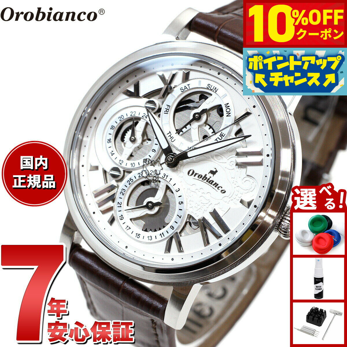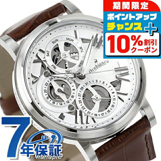 メーカー希望小売価格はメーカーサイトに基づいて掲載していますこの商品のお問い合わせ番号CPR-item-69847■ 商品詳細説明 オロビアンコ[Orobianco]イタリアらしいアンティークな様式美に現代の芸術性が加わったデザイン。革の繊細なアレンジとシルバーの趣ある造形が上品なカジュアルさを醸し出すセンス。そして日本の職人の手によるこだわりの技術。「Orobianco」の持つ、軽快で洒落た雰囲気を取り入れたトレンドに左右されない大人が身に着けるジュエリーです。ワンポイントのスケルトンデザインが施された大き目のフェイスに、ローマン数字の文字盤。クラシカルなデザインに遊び心が感じられる「ORAKLASSICA」裏側もスケルトン仕様というジャコモ氏のこだわりが詰め込まれたモデルです。映画の中で見るような構造美が映える逸品です。型番OR002-2ケース材質:ステンレススチールサイズ約:径41mm×厚:10mm重さ:約52gベルト幅:20mmベルト材質:レザーカラー:ブラウンベルト腕周り最少:14cmベルト腕周り最大:19.5cmムーブメントクオーツ(電池式)機能風防:ミネラルガラス日付・曜日表示24時間表示オープンハート防水機能防水性:日常生活用強化防水付属品Orobianco純正BOX保証書取扱説明書※説明書・保証書に関して入荷時期により仕様、内容が一部異なる場合がございます。予めご了承をお願い致します。また、ブランドにより説明書兼保証書が付属する場合がございます。予めご了承をお願い致します。