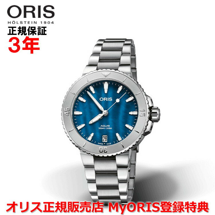 【国内正規品】 ORIS オリス アクイスデイト 36.5mm AQUIS DATE レディース 腕時計 ウォッチ 自動巻き ダイバーズ ステンレススティールブレスレット ブルーマザーオブパール文字盤 青 シェル 01 733 7770 4155-07 8 18 05P
