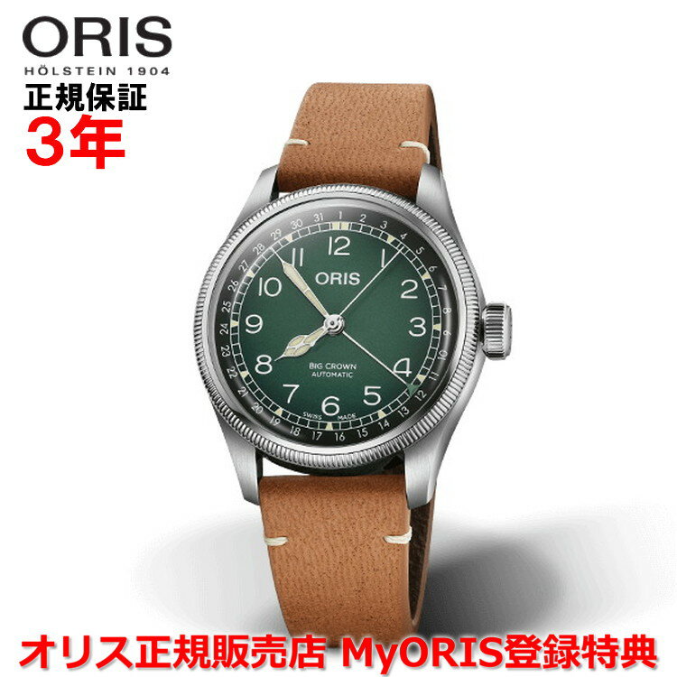 【国内正規品】 ORIS オリス チェルボボランテ コラボモデル ビッグクラウンポインターデイト 38mm Big Crown Pointer Date メンズ 腕時計 ウォッチ 自動巻き 革ベルト グリーン文字盤 緑 01 754 7779 4067-Set
