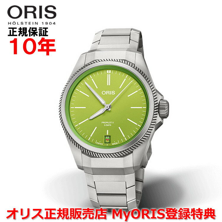 ORIS オリス ProPilot X プロパイロット Xカーミットエ ディション 01-400-7778-7157-Set 39mm グリーン 自動巻き メンズ 腕時計 10気圧防水 チタン製【正規10年保証 】【5日間パワーリザーブ】【39ミリ】【プレゼント】
