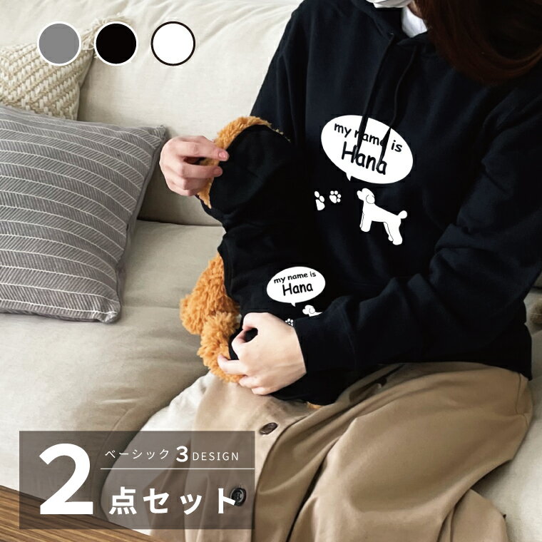 [送料無料]わんちゃんとおそろいコーデ「OSOROI」 フーディー&ジップパーカー 犬種が選べる ワンちゃんシルエット 犬とペアルック 2点セット 犬の服 ドッグウェア 犬とお揃い 名入れ 名前入り ギフト プレゼント